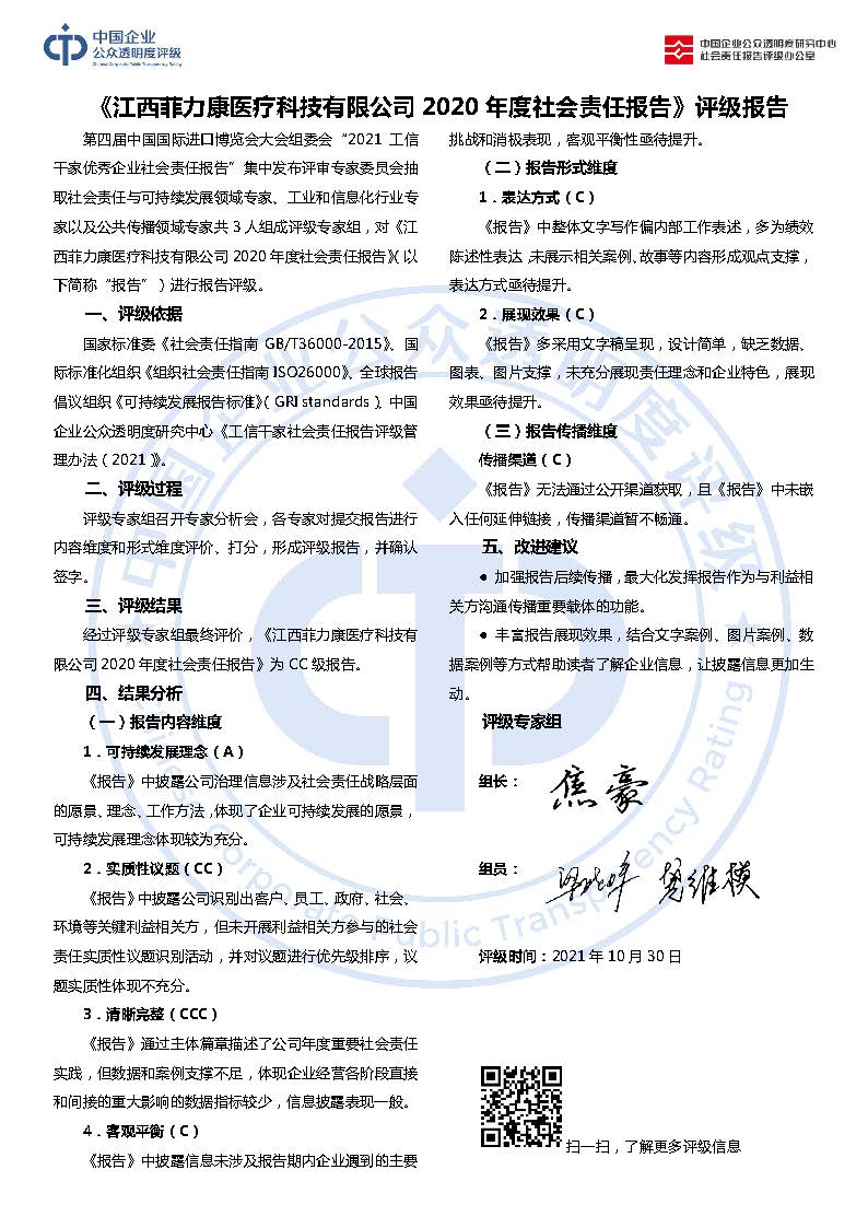 《江西菲力康医疗科技有限公司2020年度社会责任报告》CC