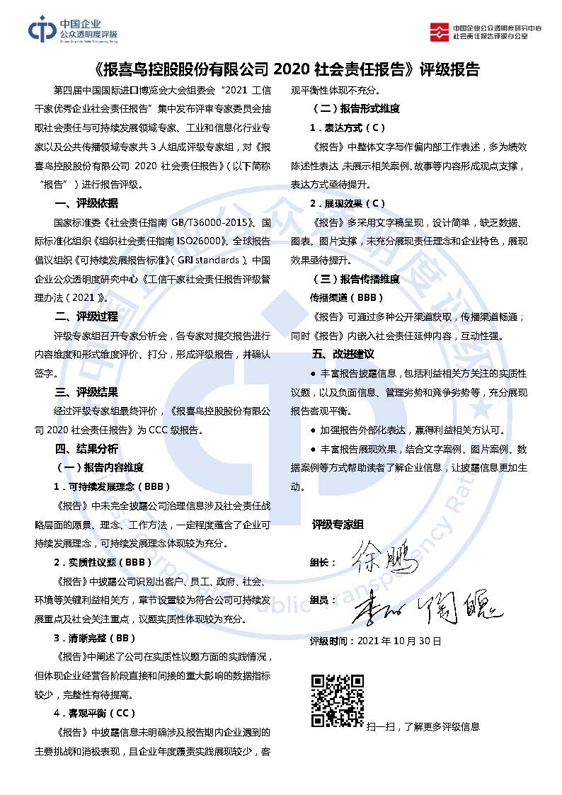 《报喜鸟控股股份有限公司2020社会责任报告》CCC