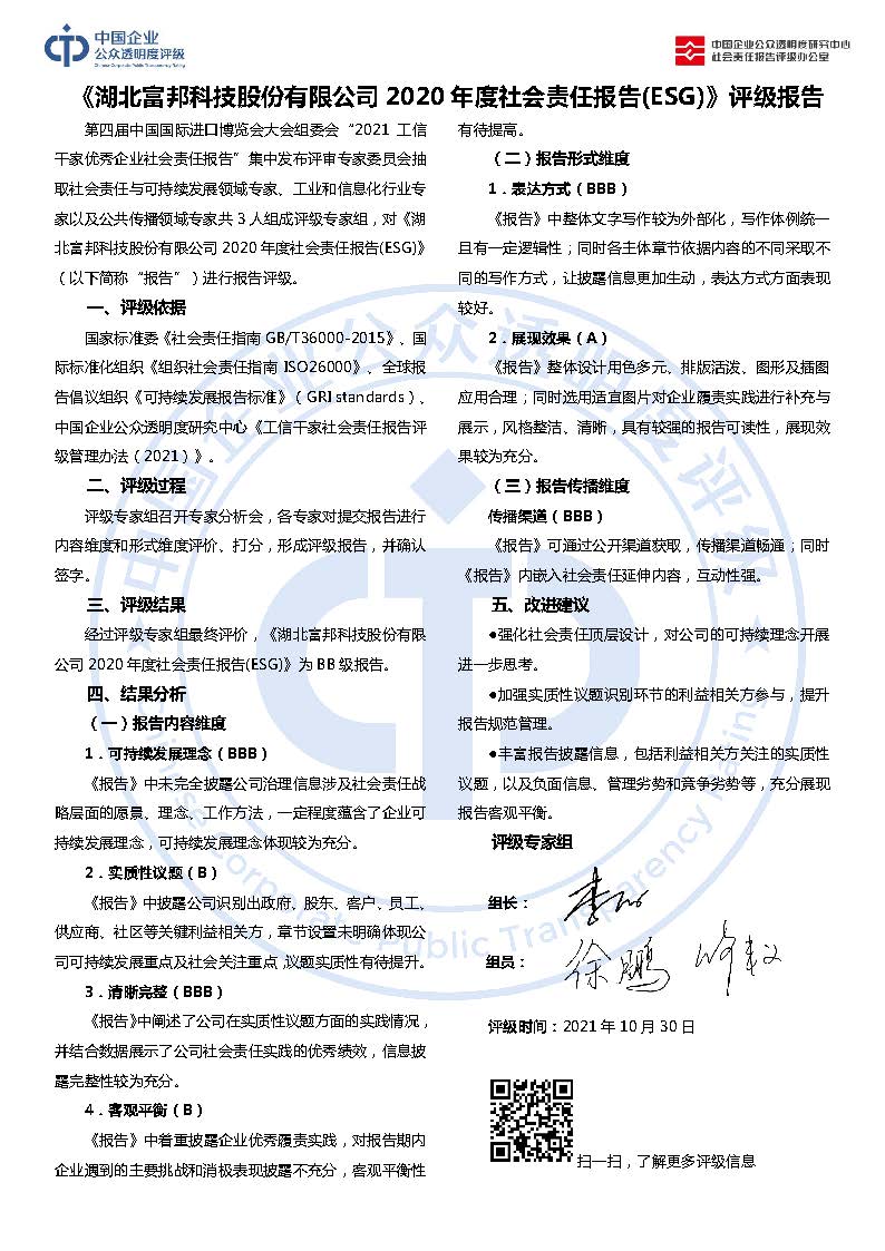 《湖北富邦科技股份有限公司2020年度社会责任报告(ESG)》BB