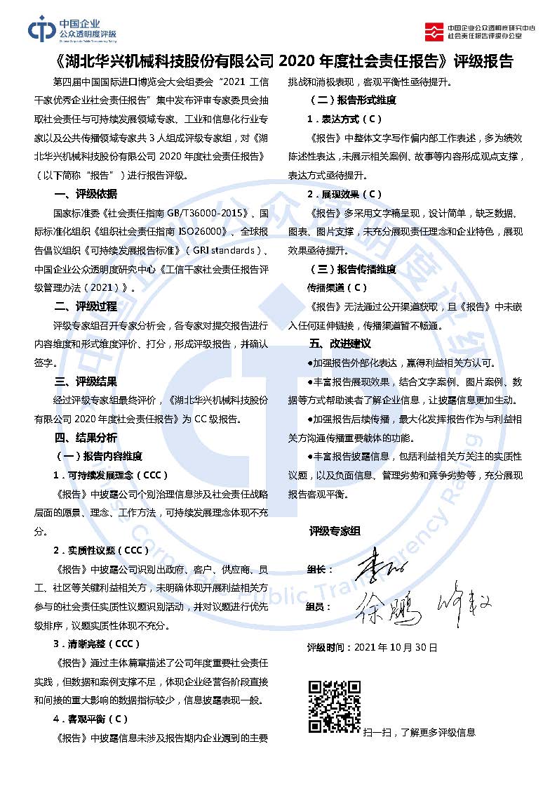 《湖北华兴机械科技股份有限公司2020年度社会责任报告》CC