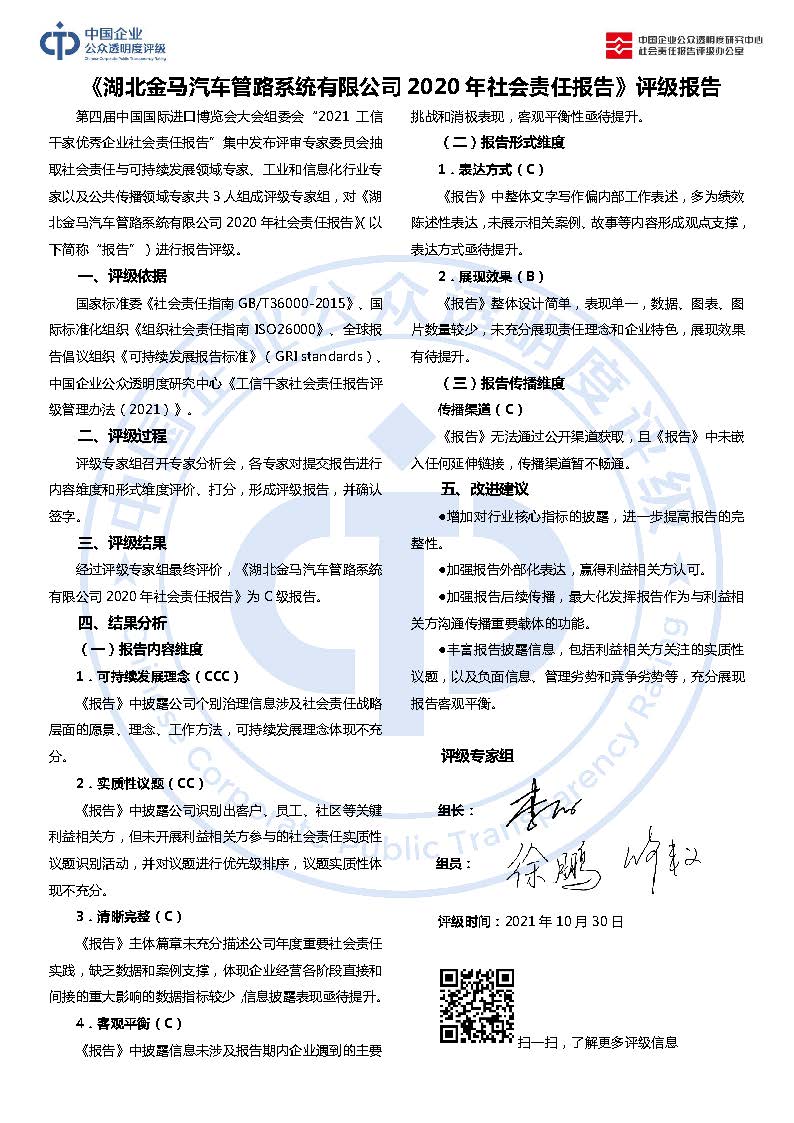 《湖北金马汽车管路系统有限公司2020年社会责任报告》C