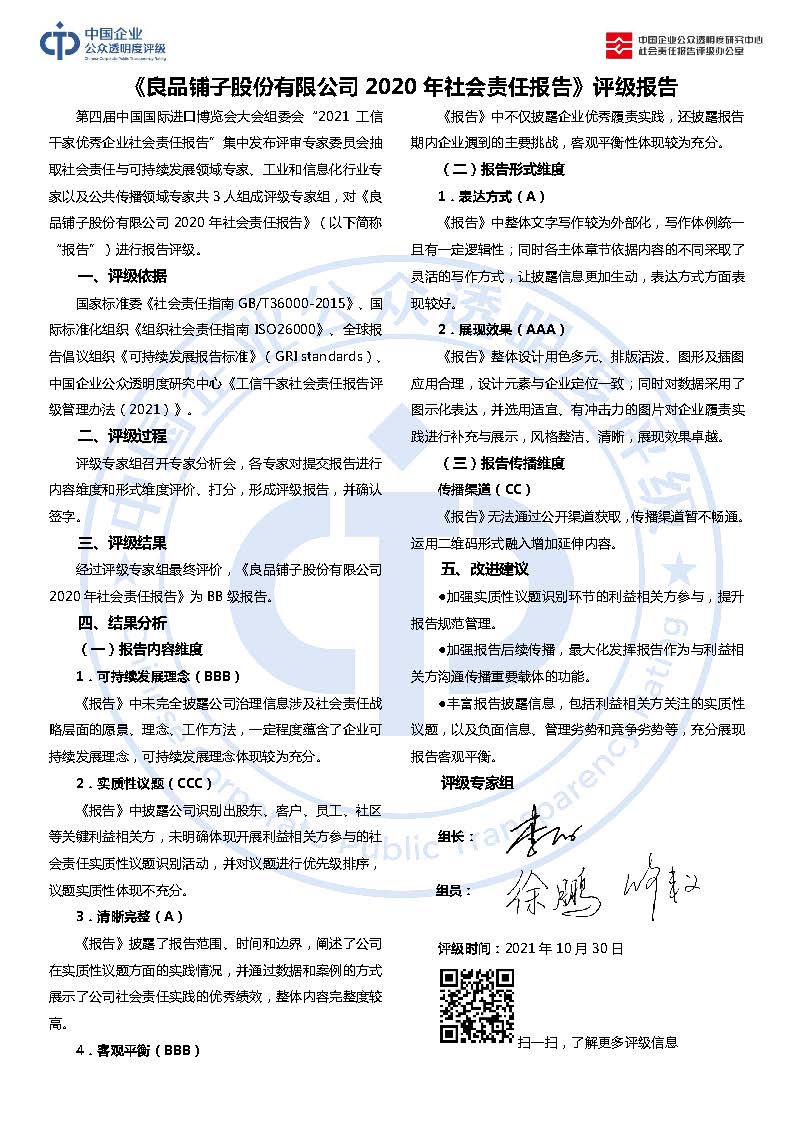 《良品铺子股份有限公司2020年社会责任报告》BB