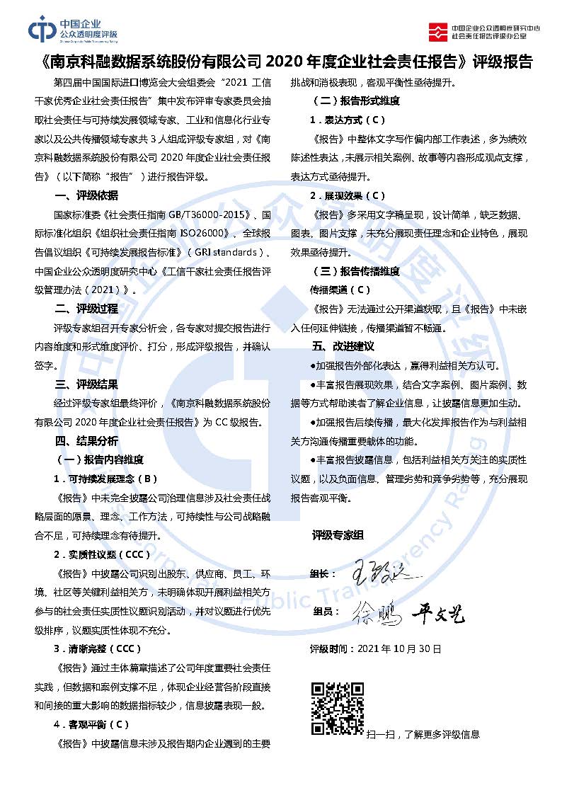 《南京科融数据系统股份有限公司2020年度企业社会责任报告》CC