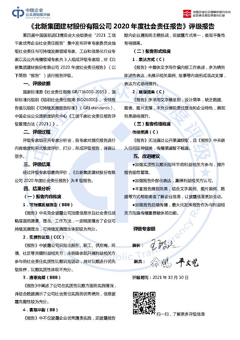 《北新集团建材股份有限公司2020年度社会责任报告》B