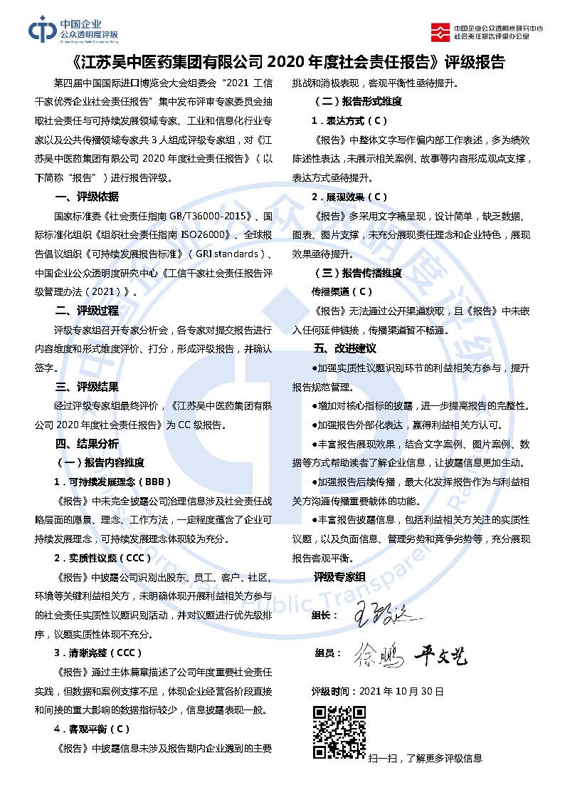 《江苏吴中医药集团有限公司2020年度社会责任报告》CC