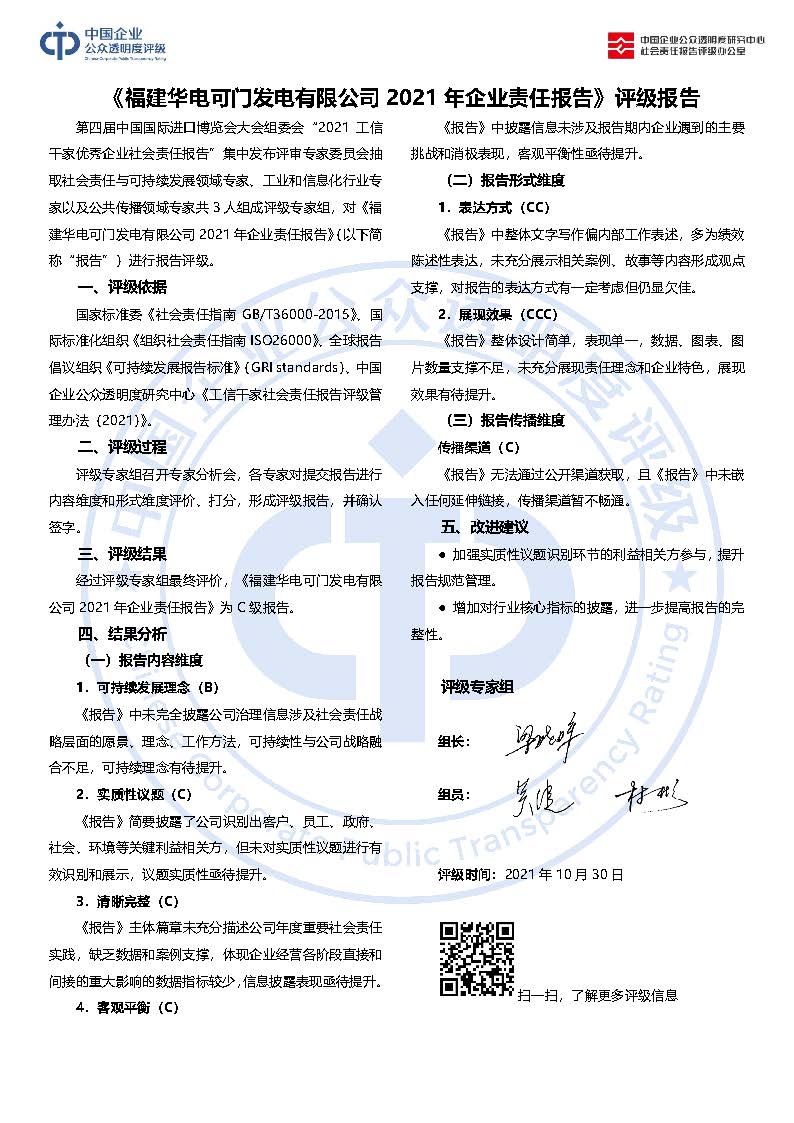 《福建华电可门发电有限公司2021年企业责任报告》C