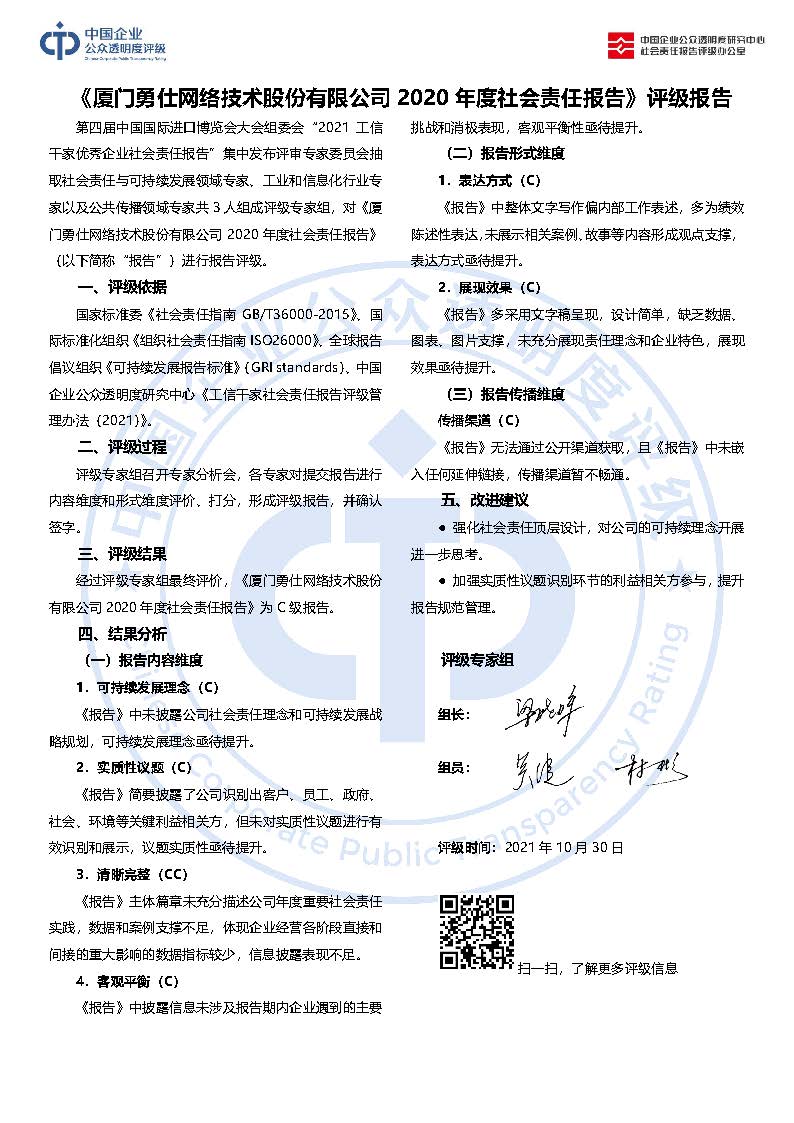 《厦门勇仕网络技术股份有限公司2020年度社会责任报告》C