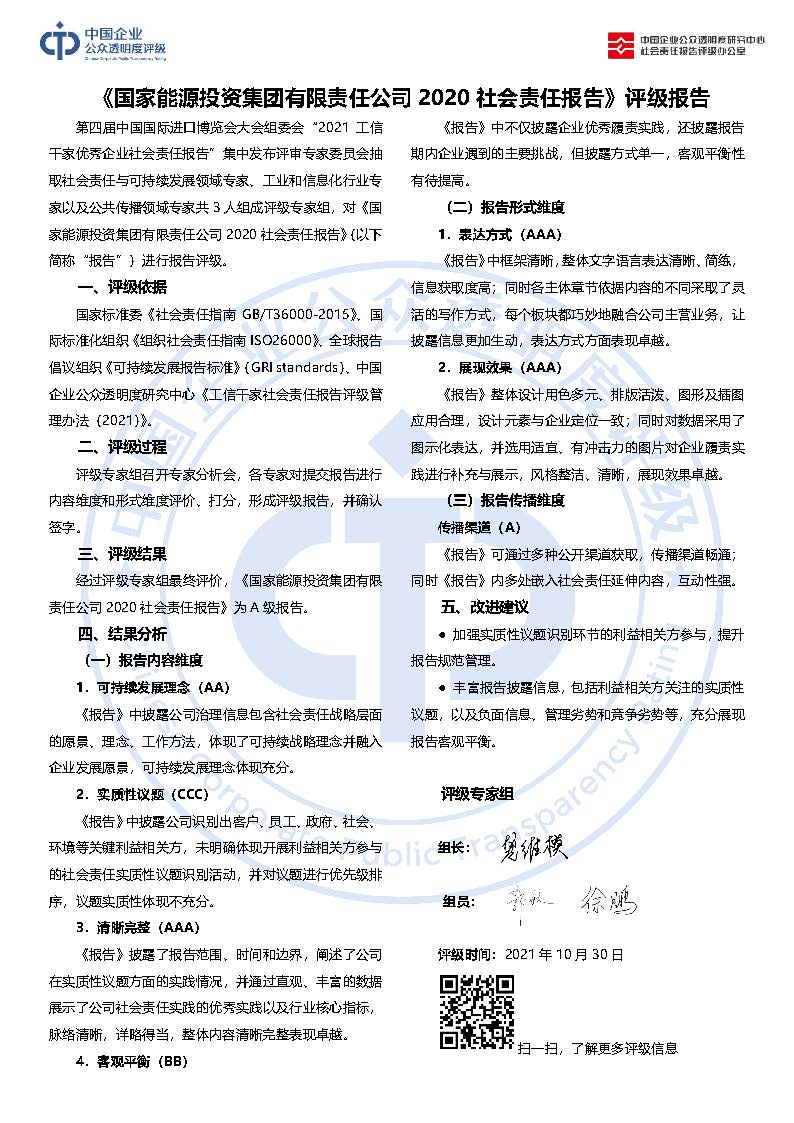 《国家能源投资集团有限责任公司2020社会责任报告》A