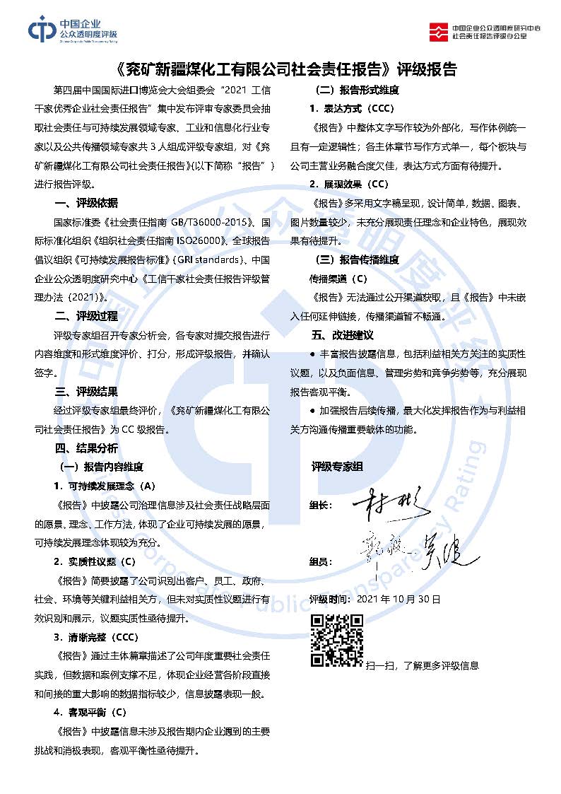 《兖矿新疆煤化工有限公司社会责任报告》CC
