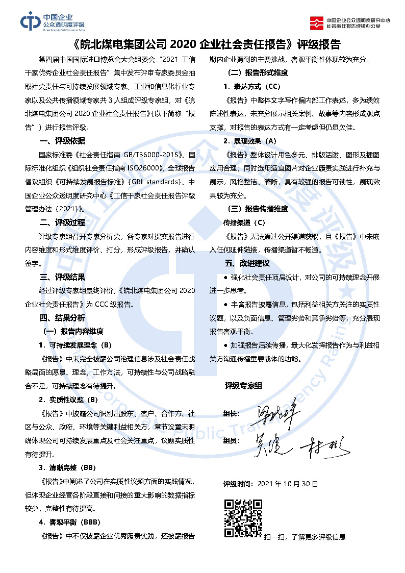《皖北煤电集团公司2020企业社会责任报告》CCC