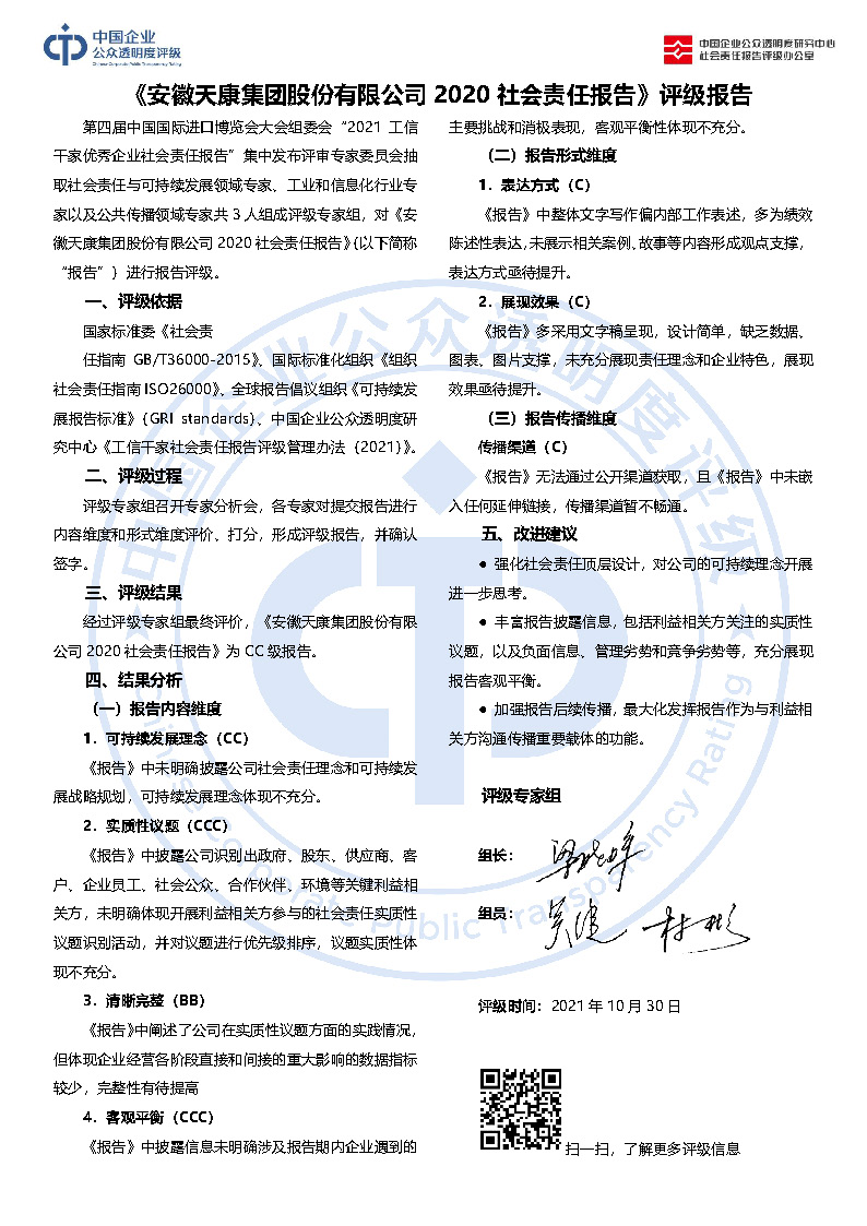 《安徽天康集团股份有限公司2020社会责任报告》CC