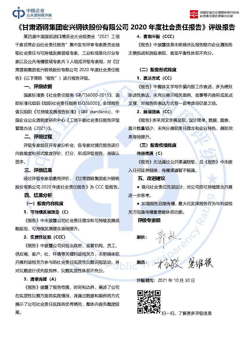 《甘肃酒钢集团宏兴钢铁股份有限公司2020年度社会责任报告》CCC
