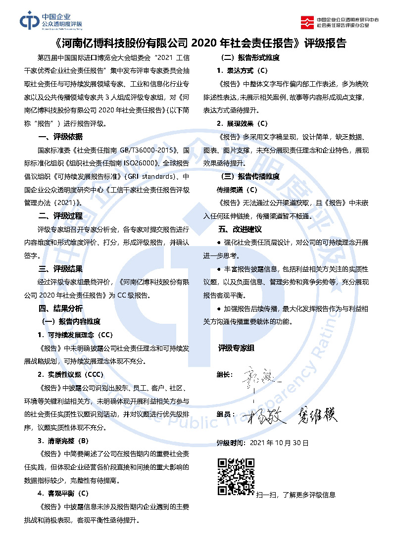 《河南亿博科技股份有限公司2020年社会责任报告》CC