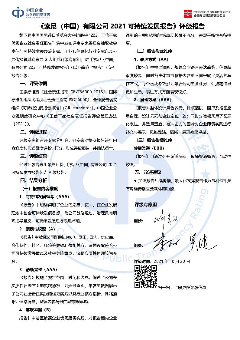 《索尼(中国)有限公司2021可持续发展报告》A