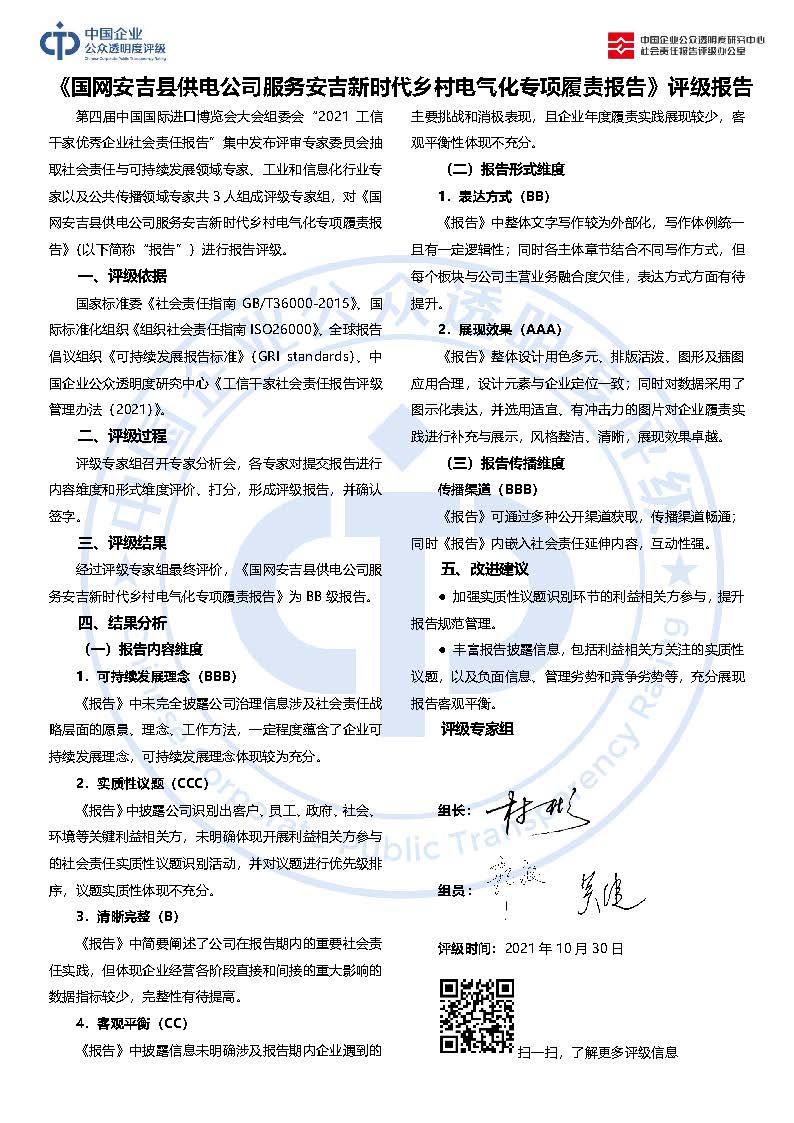 《国网安吉县供电公司服务安吉新时代乡村电气化专项履责报告》BB