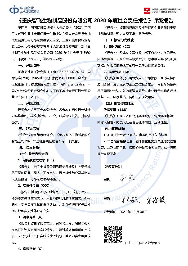 《重庆智飞生物制品股份有限公司2020年度社会责任报告》B