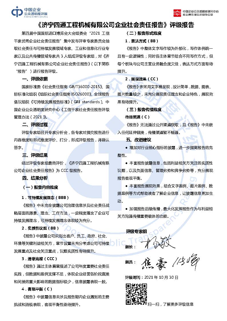 《济宁四通工程机械有限公司企业社会责任报告》CCC