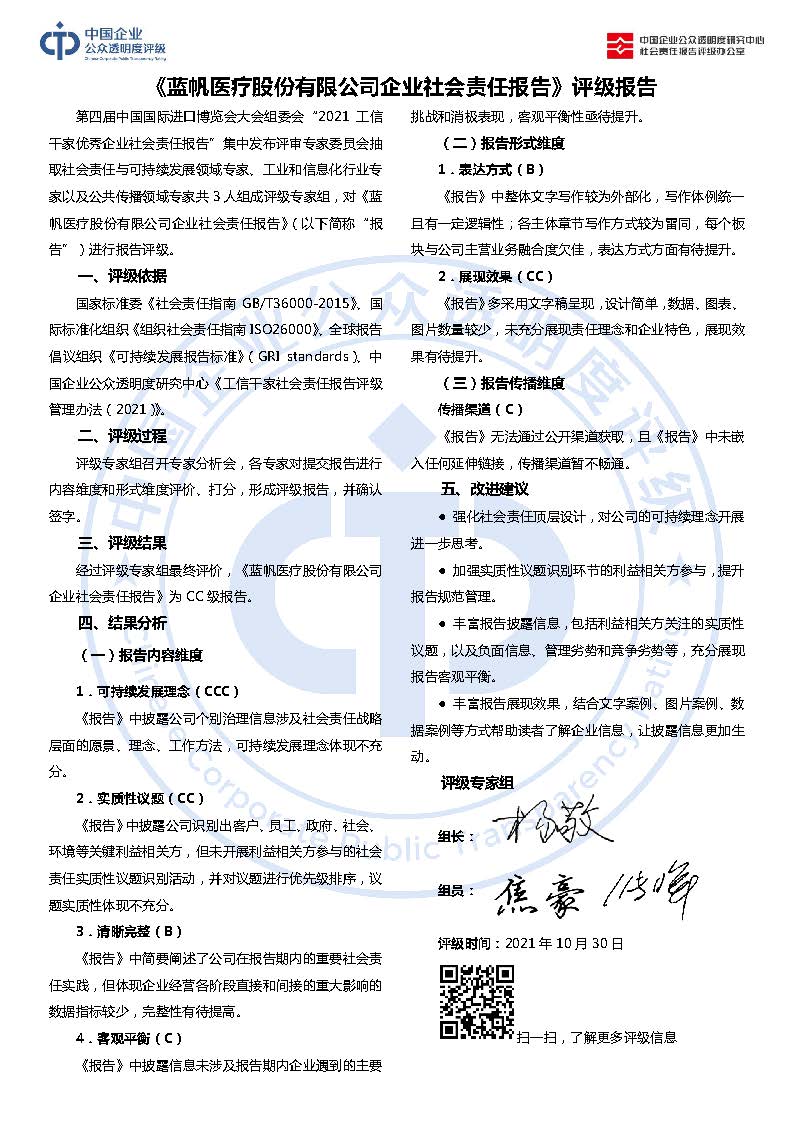 《蓝帆医疗股份有限公司企业社会责任报告》CC