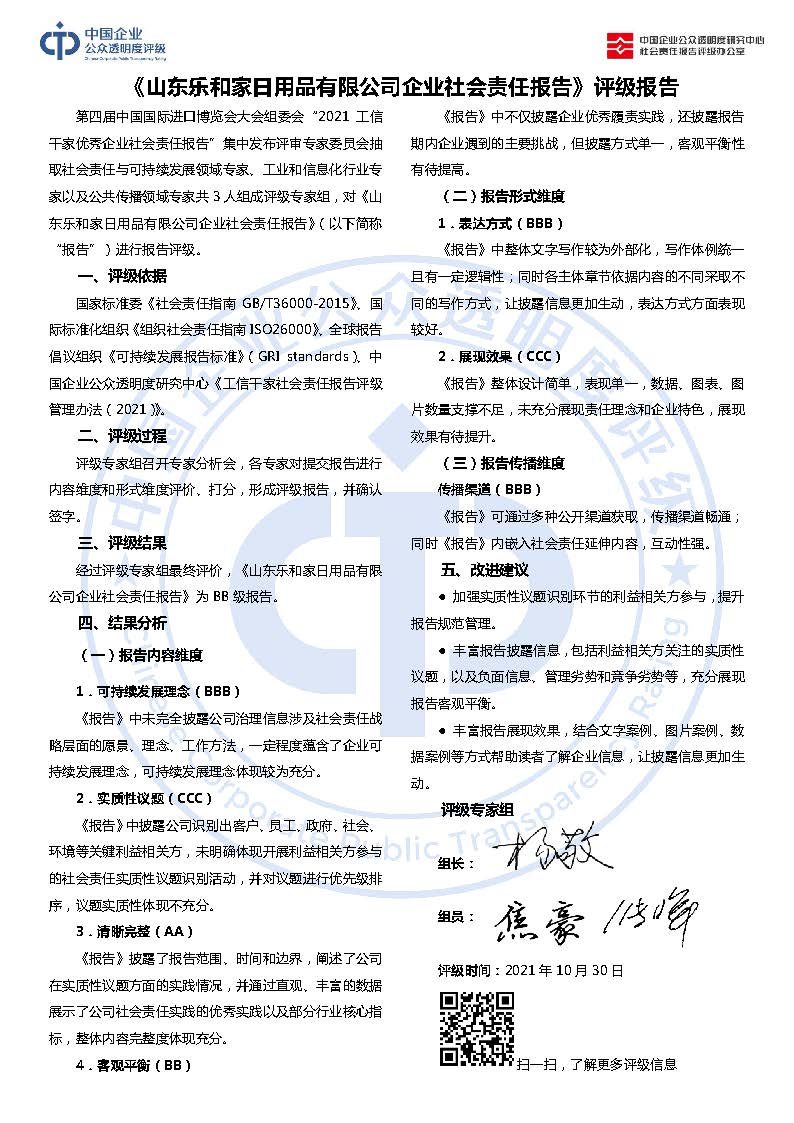 《山东乐和家日用品有限公司企业社会责任报告》BB