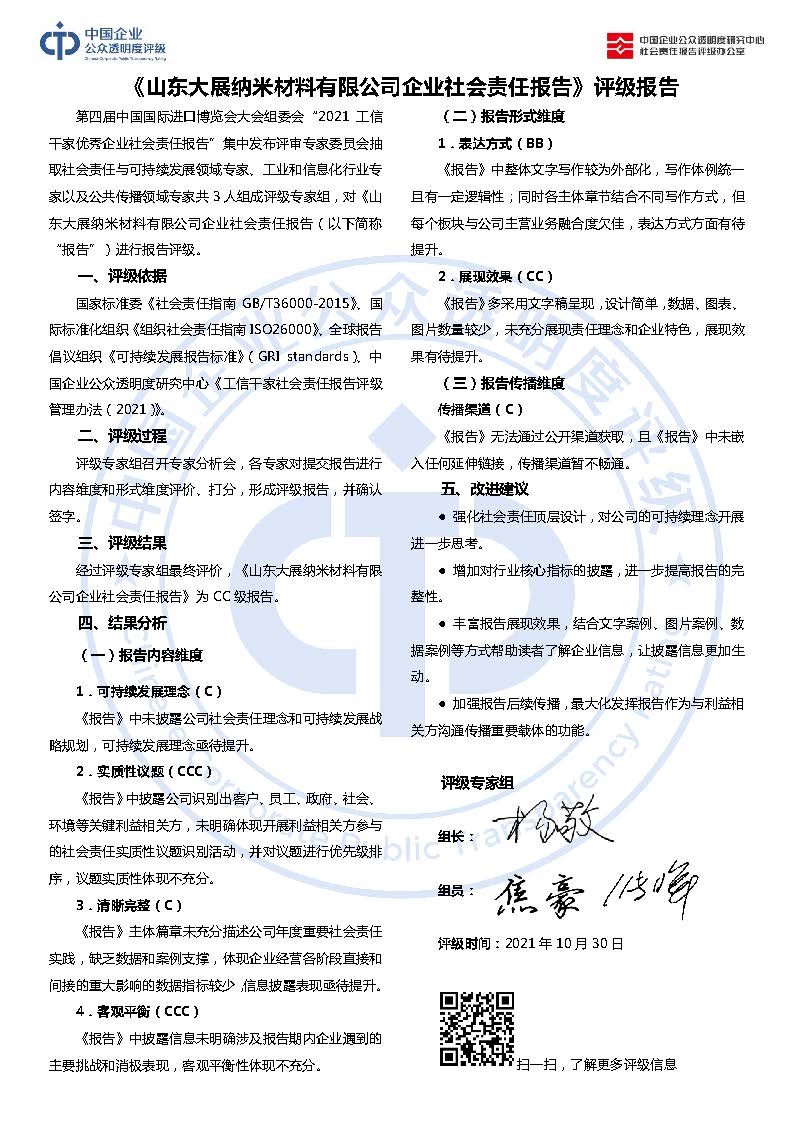 《山东大展纳米材料有限公司企业社会责任报告》CC