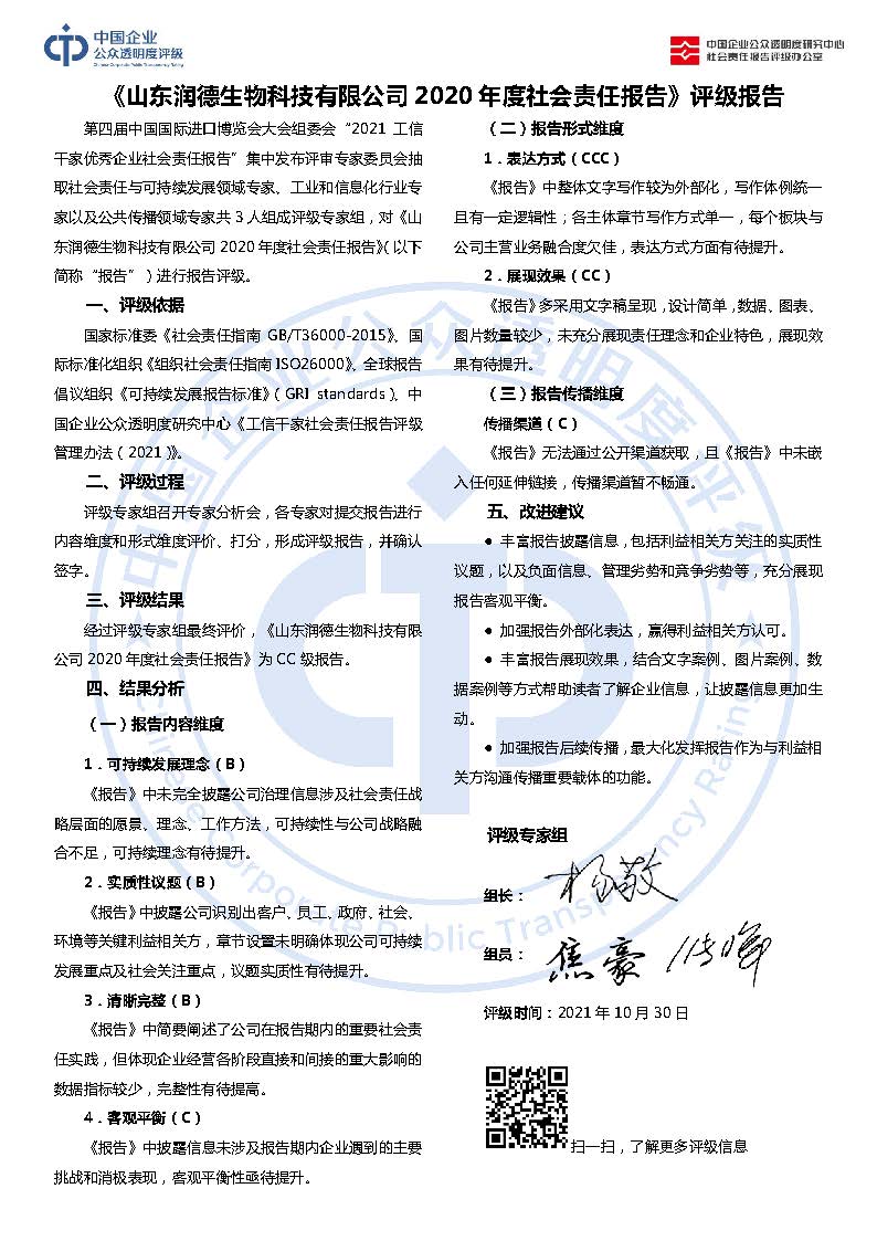 《山东润德生物科技有限公司2020年度社会责任报告》CC