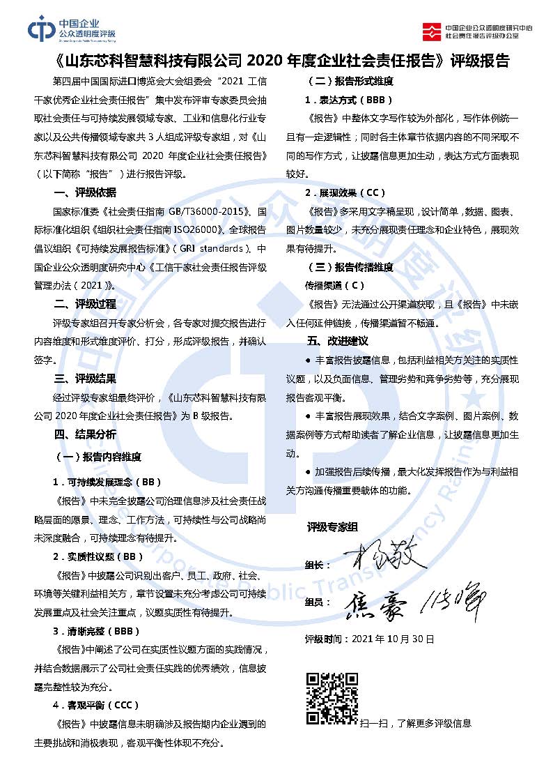 《山东芯科智慧科技有限公司2020年度企业社会责任报告》B