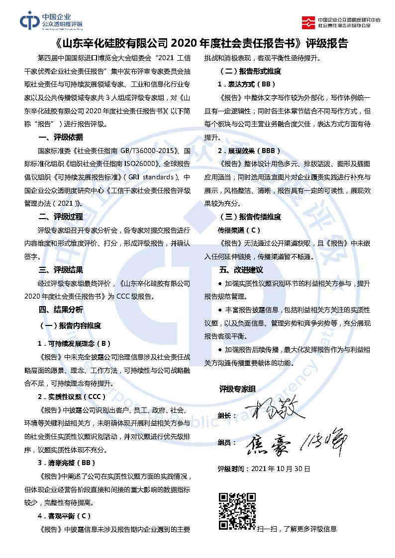 《山东辛化硅胶有限公司2020年度社会责任报告书》CCC
