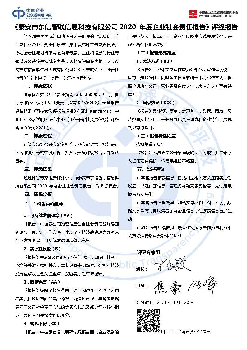 《泰安市东信智联信息科技有限公司2020年度企业社会责任报告》B