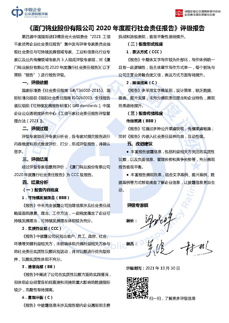 《厦门钨业股份有限公司2020年度履行社会责任报告》CCC