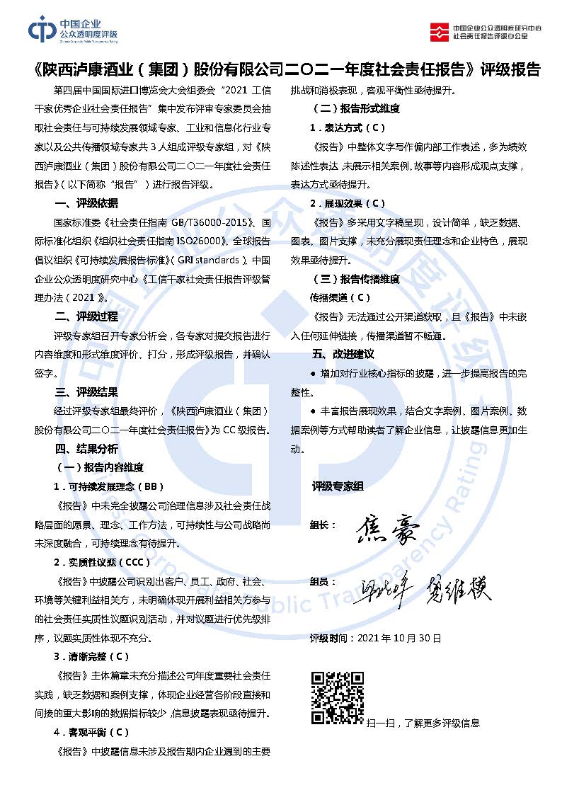 《陕西泸康酒业(集团)股份有限公司二〇二一年度社会责任报告》CC
