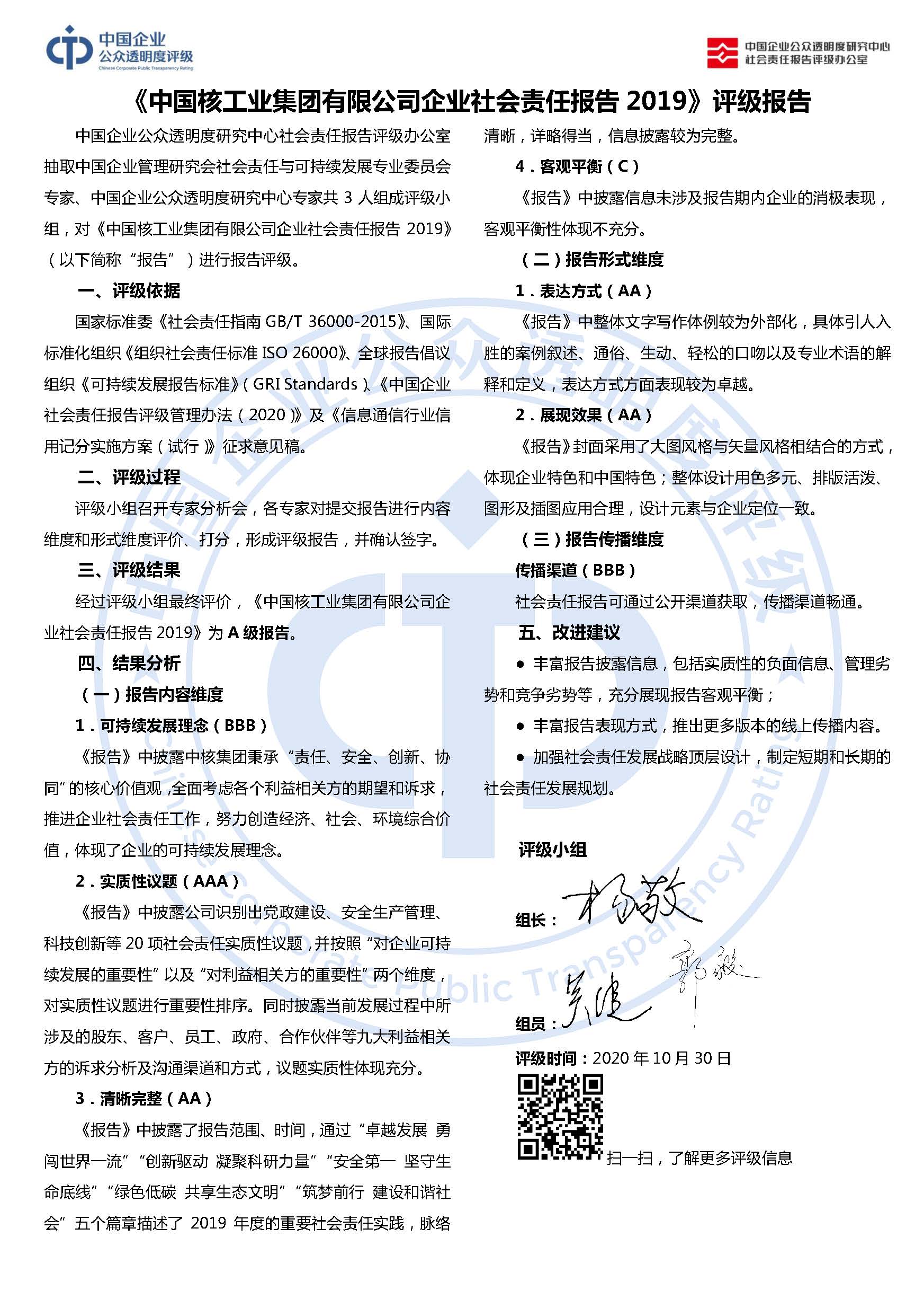 《中国核工业集团有限公司企业社会责任报告2019》 A