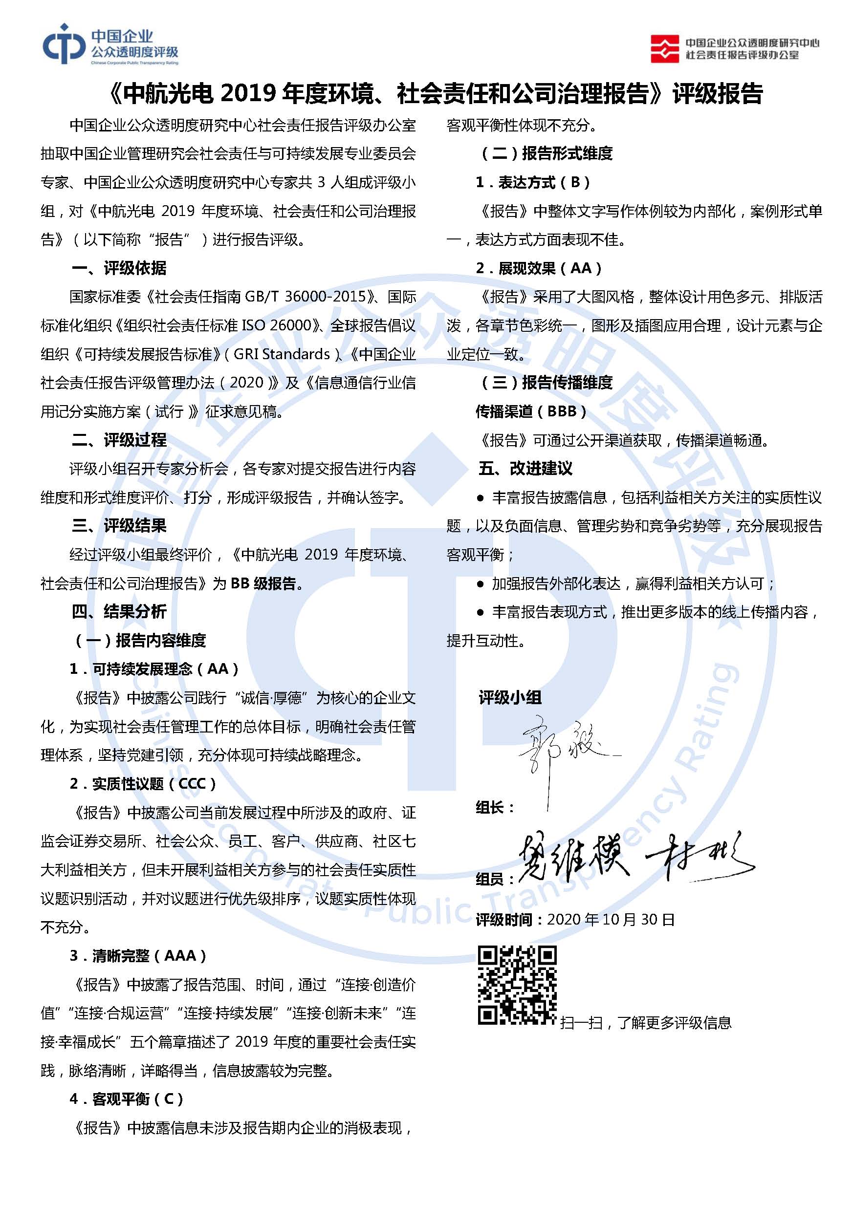 《中航光电2019年度环境、社会责任和公司治理报告》 BB