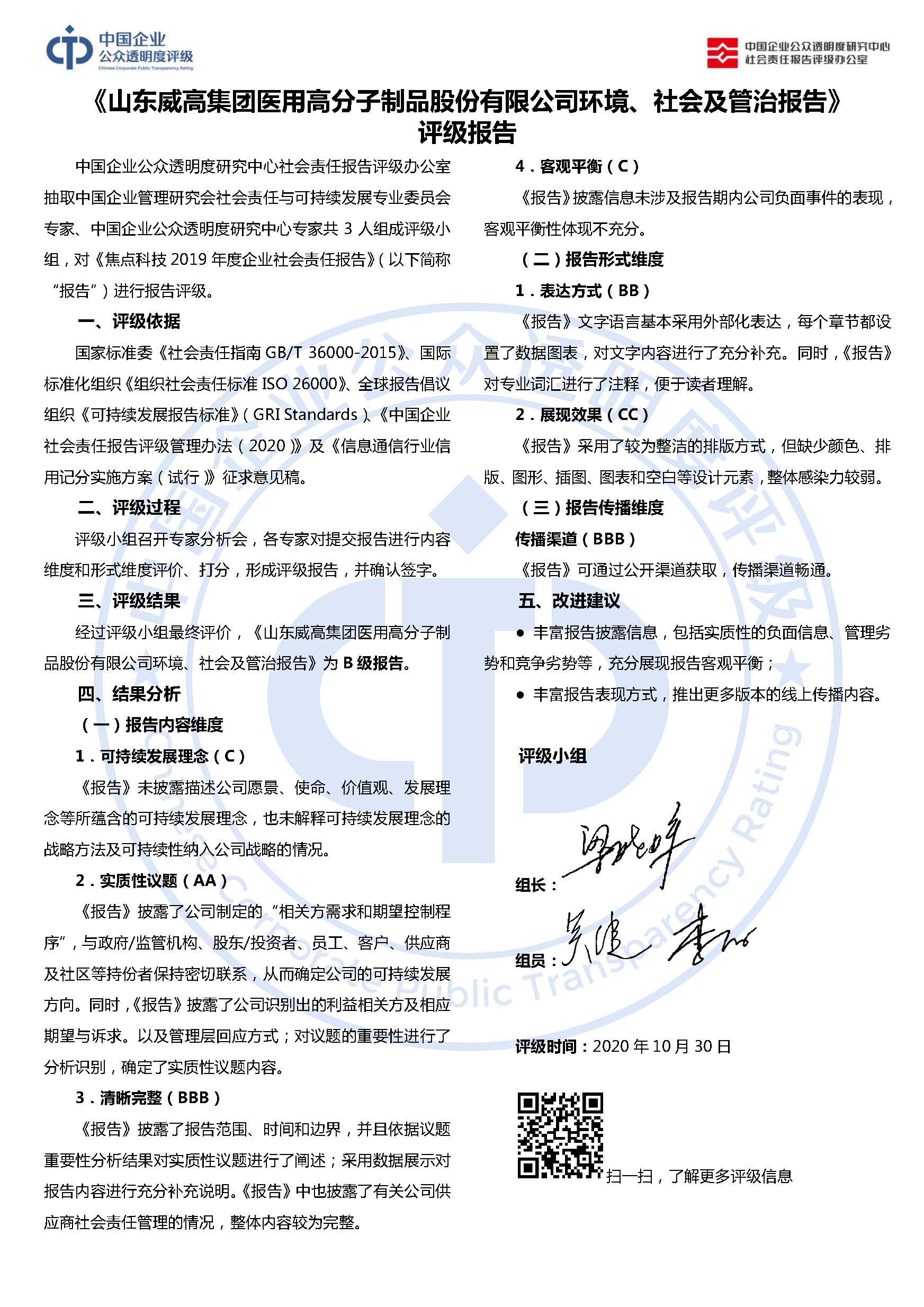 《山东威高集团医用高分子制品股份有限公司2019环境、社会及管治报告》 B